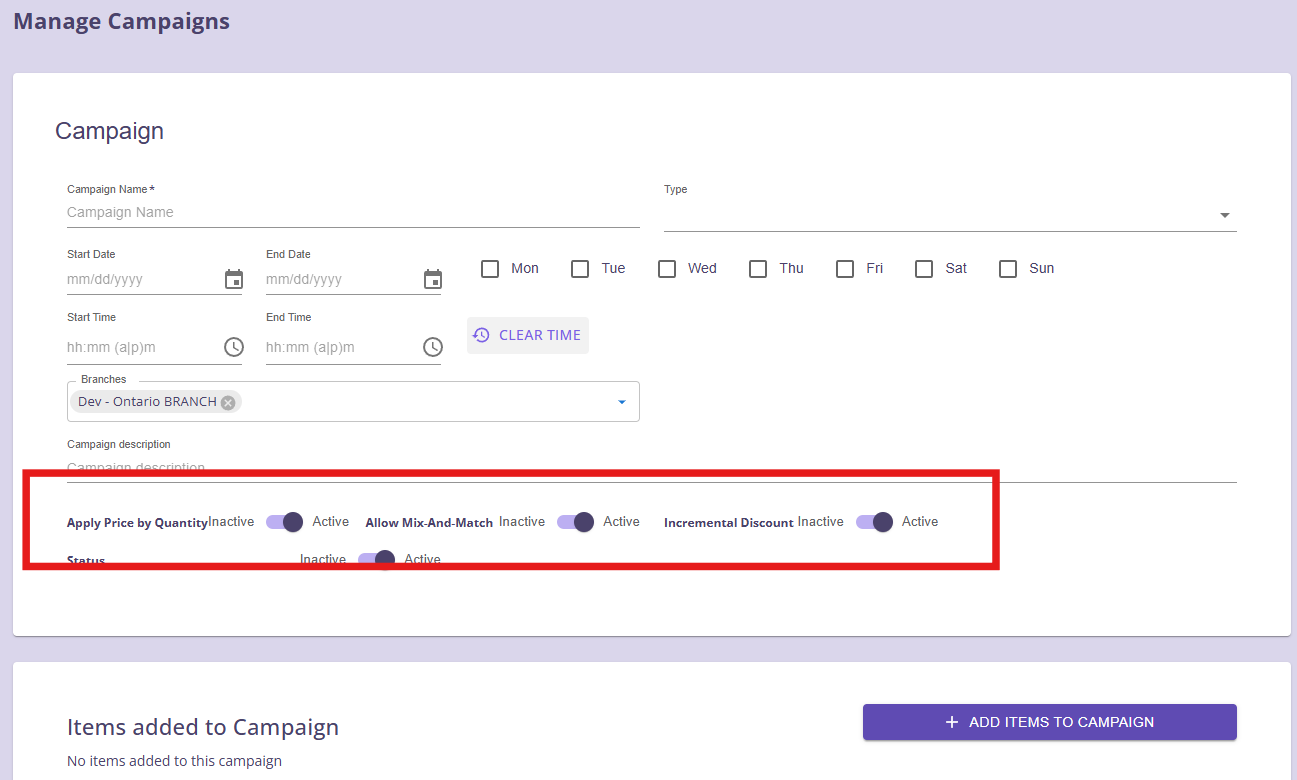 Campaign Mix and Match is a campaign with advanced configuration options. Depending on the setup, pricing rules such as Price by Quantity, Mix & Match, or Incremental Discounts can be applied automatically when conditions are met.