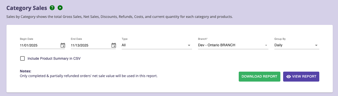 Navigation Steps: Go to Menu > Reports > Sales by Category1. Report Filters