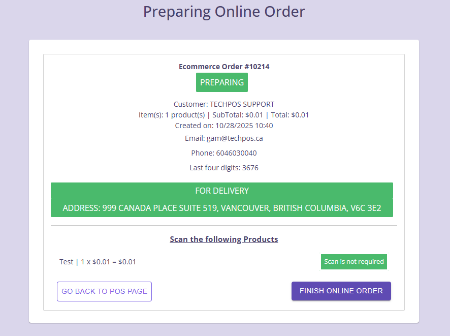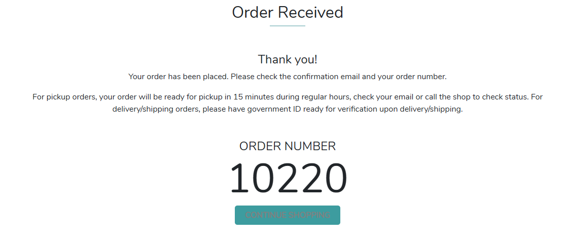Step 3: Customer checks out and pays for the order, then they receive an order ID and email confirmation.