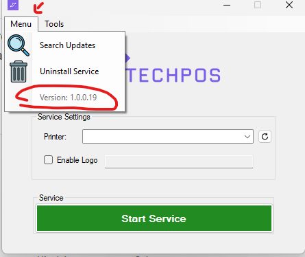 Step 6: Once the version has been verified, select the installed thermal printer from the Printer menu.