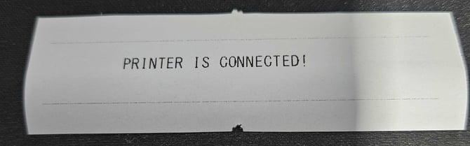 If all connections are correct, the printer will print a small receipt saying "Printer is connected" and the cash drawer will open.