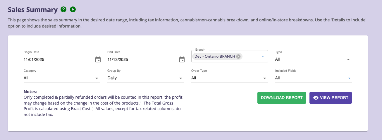 Navigation Steps: Go to Menu > Reports > Sales Summary1. Report Filters