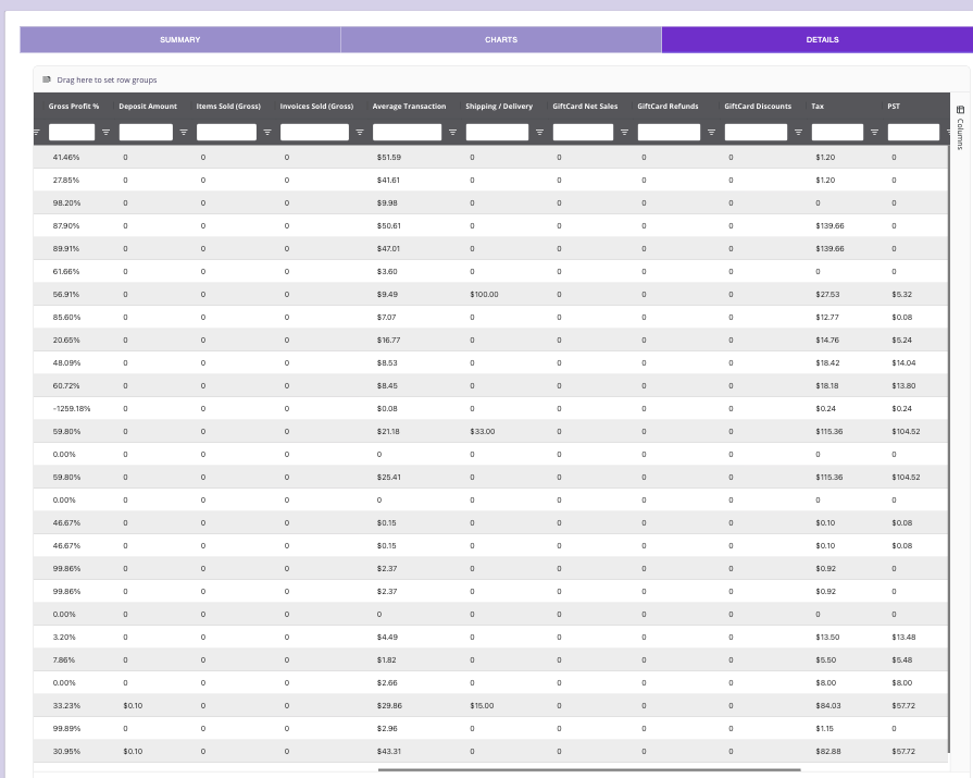 - Use Gross Profit % filtering to isolate low-margin days/products.