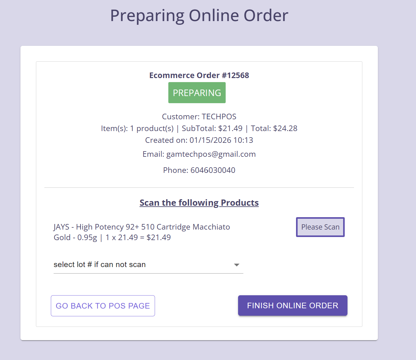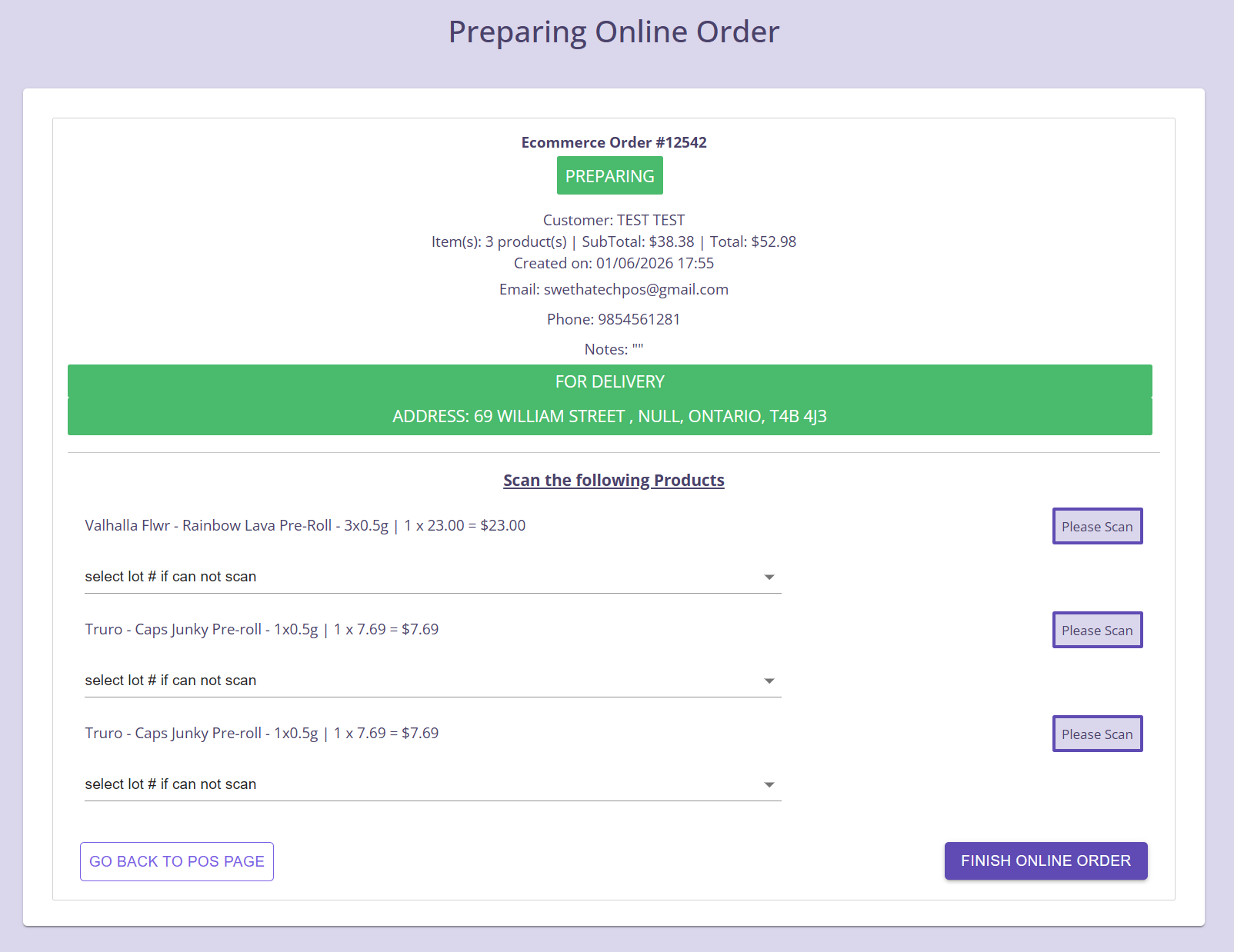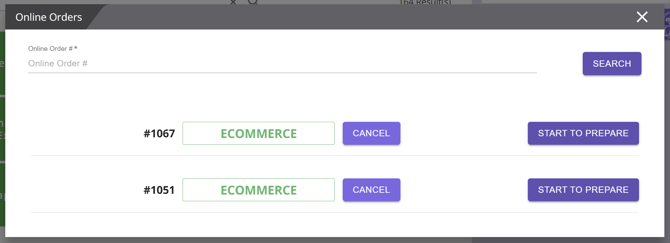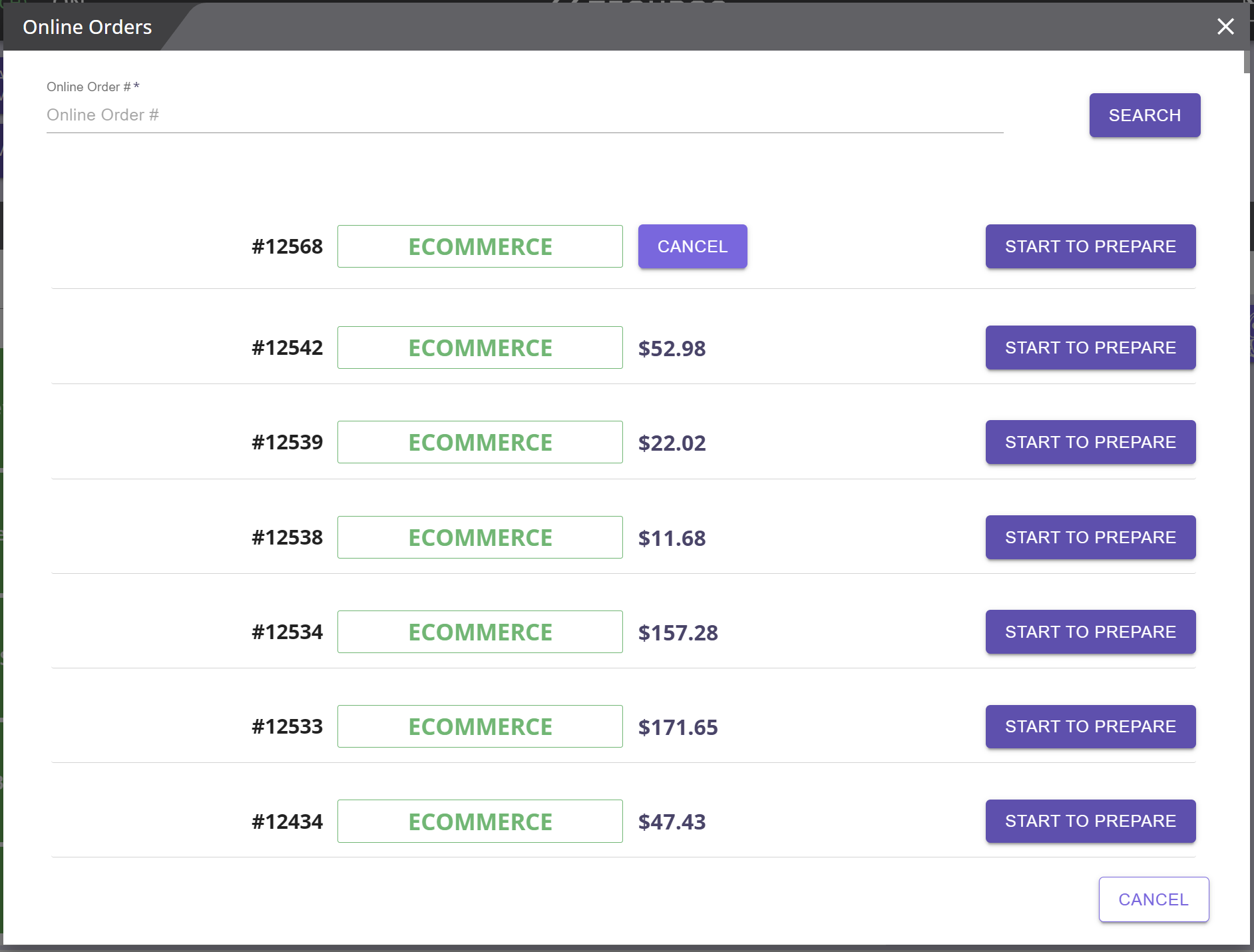 If a Cancel Button appears beside the order type, it means the customer placed the order online but chose to pay in store.